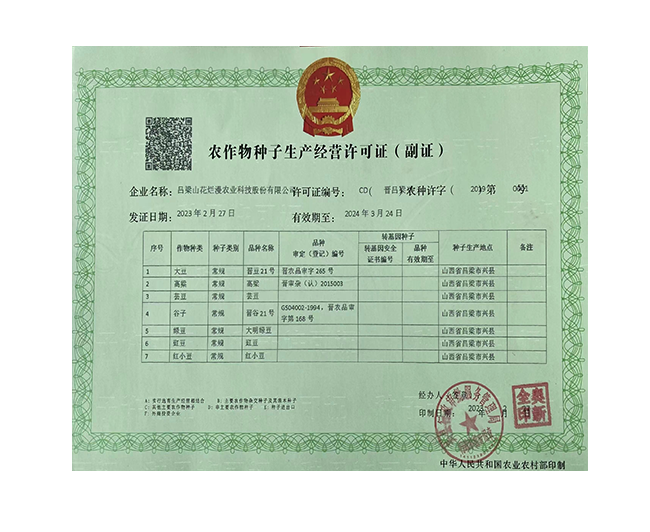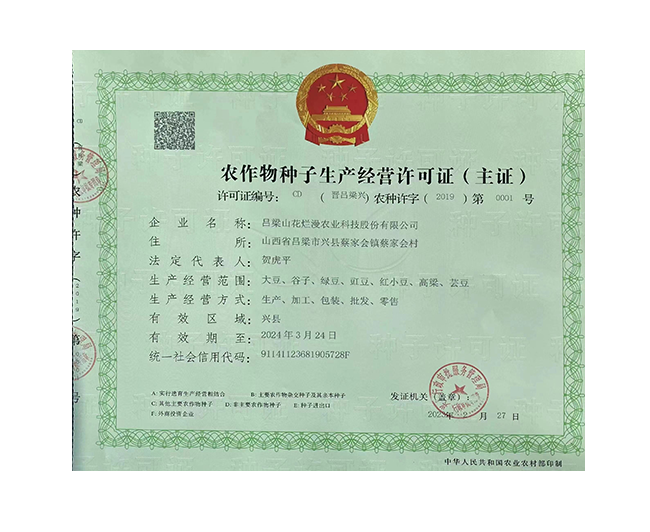 呂梁山花爛漫農(nóng)業(yè)科技股份有限公司是山西省農(nóng)業(yè)產(chǎn)業(yè)化重點龍頭企業(yè),公司成立于2008年,法人代表賀虎平,注冊資本1000 萬元,現(xiàn)有員工 30 人。公司位于興縣蔡家會鎮(zhèn)蔡家會村建有占地面積1萬多平方米生產(chǎn)區(qū)和辦公區(qū),年總加工雜糧能力達(dá)到4萬噸。擁有一套日精加工50噸谷子成套設(shè)備生產(chǎn)流水線;擁有一套日精加工30噸豆面、蕎面設(shè)備流水生產(chǎn)線;擁有一套日精加工50噸紅小豆、豇豆、綠豆、腎型黃豆、紅蕓豆設(shè)備流水生產(chǎn)線,2020年引進省農(nóng)科院農(nóng)產(chǎn)品加工研究所谷子精深加工技術(shù),目前設(shè)計年產(chǎn)300噸的小米油加工一條龍生產(chǎn)線已經(jīng)安裝調(diào)試完畢,產(chǎn)品經(jīng)化驗達(dá)到國家一級油標(biāo)準(zhǔn),并獲得兩項專利證書。主要產(chǎn)品有“山花爛漫”牌有機小米、綠色小米各種精美包裝系列;蔡家會村豇豆面、豌豆面等雜糧面、手搟豆面系列、以及有機精品雜糧系列。擁有“山花爛漫”山西省著名商標(biāo)。公司采用線下和線上銷售相結(jié)合的營銷模式。